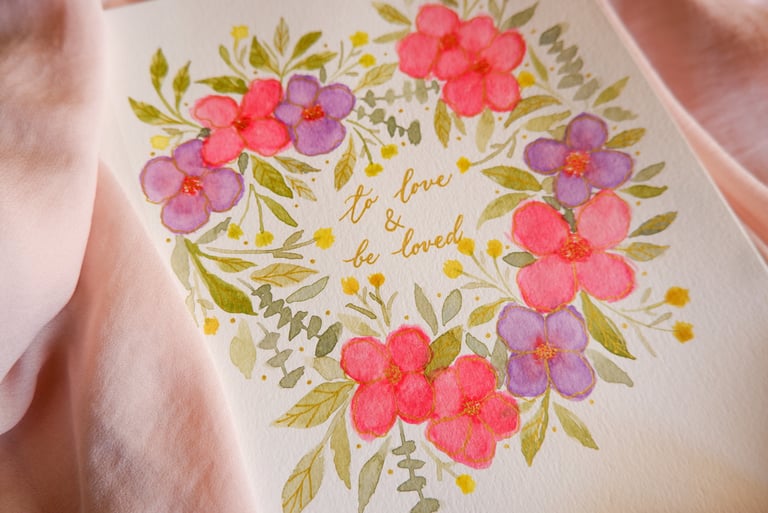 Working as a live watercolor artist based in NYC, I create delicate floral illustrations paired with calligraphy, transforming each piece into a personalized, artful keepsake your guests will truly treasure.